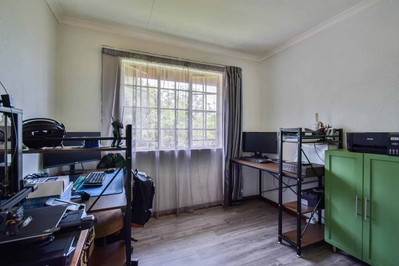 Discover this charming 2-bedroom, 1-bathroom top-floor unit, ideal for first-time buyers or those looking to downsize. Situated in a secure complex at the end of a peaceful cul-de-sac, this property boasts an enviable location near Waterkloof High School, making it convenient for families with school-going children.